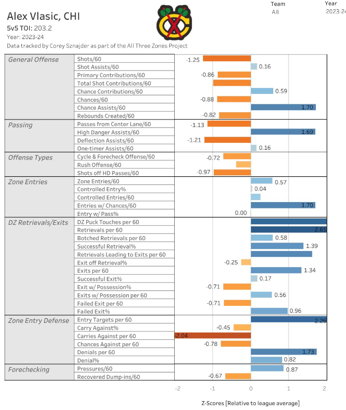 Vlasic’s zone exits are above league average, and his zone entry passes are too.