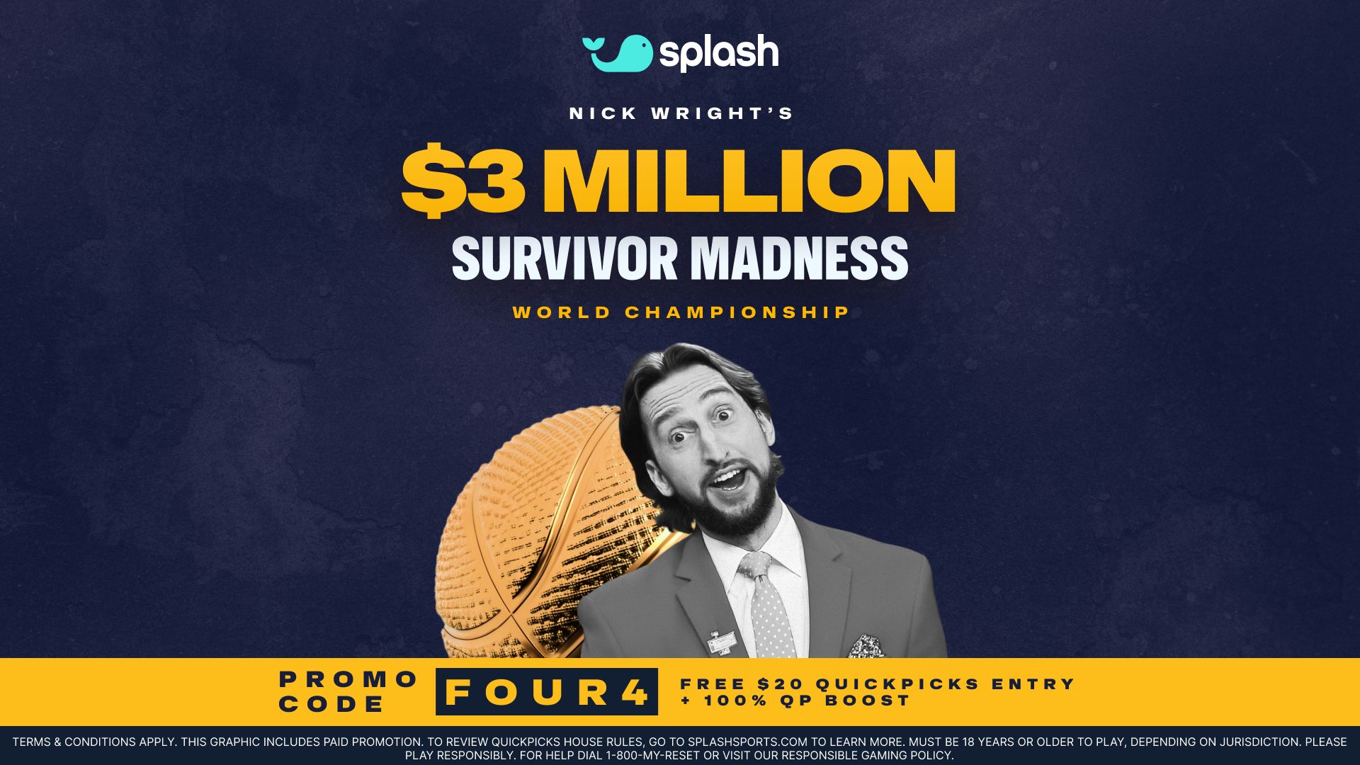We have partnered with Splash Sports to bring you Nick Wright’s $3M Survivor March Madness World Championship.